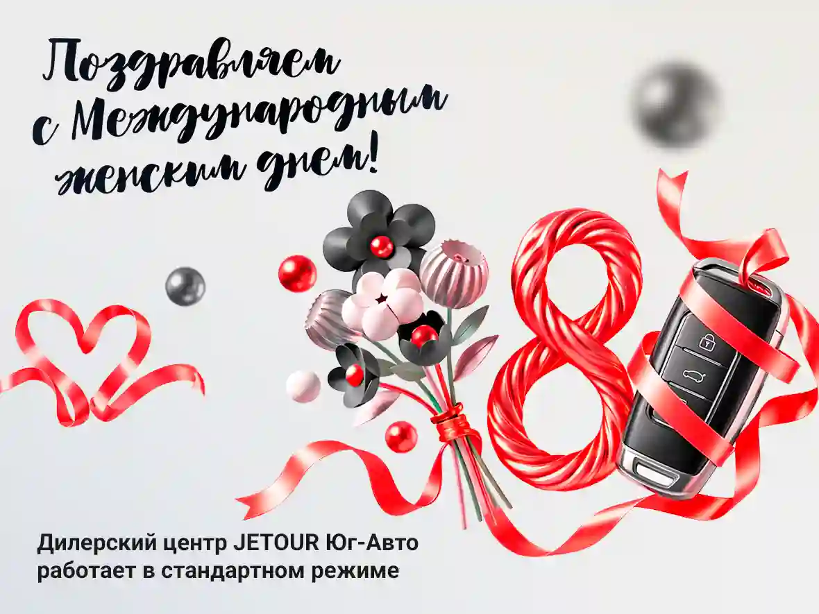 Дорогие дамы, команда дилерского центра Юг-Авто JETOUR поздравляет Вас с Международным Женским Днём!